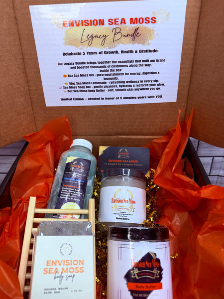 Packed with our top sellers — Sea Moss Gel, Lemonade, Soap & Body Butter — this exclusive set honors the journey, growth, and community that made Envision Sea Moss a household name. 💛